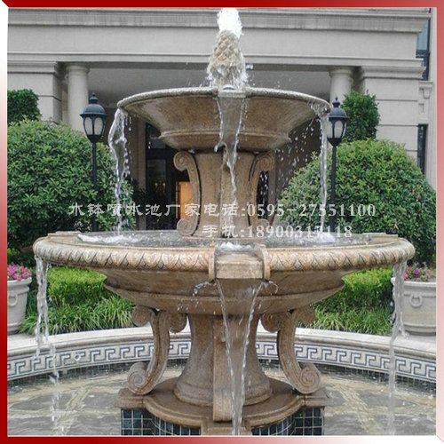 石材石雕噴泉設(shè)計,使靜水變?yōu)閯铀?使水也有了靈魂,又輔之以各種燈光效果,使水體具有豐富多采的形態(tài),可以緩沖、軟化城市中“凝固的建筑物”和硬質(zhì)的地面,以增加城市環(huán)境的生機(jī),有益于身心健康并能滿足視覺藝術(shù)的需要。大型城市廣場中的人工動態(tài)噴泉,也多來自自然的種種水態(tài),如瀑布、疊水、水簾、溢流、溪流、壁泉等,隨著科學(xué)技術(shù)的發(fā)展進(jìn)步,各種噴泉造景真是花樣翻新、層出不窮,幾乎達(dá)到了人們隨心所欲創(chuàng)造各種晶瑩剔透、絢麗多姿動態(tài)水景的程度。噴泉在當(dāng)今時代,已經(jīng)形成了一道獨(dú)特的人文景觀。