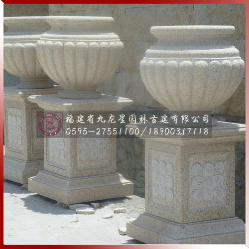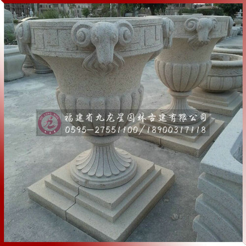 埃及米黃花缽-房地產樓盤小區石雕案例高清圖