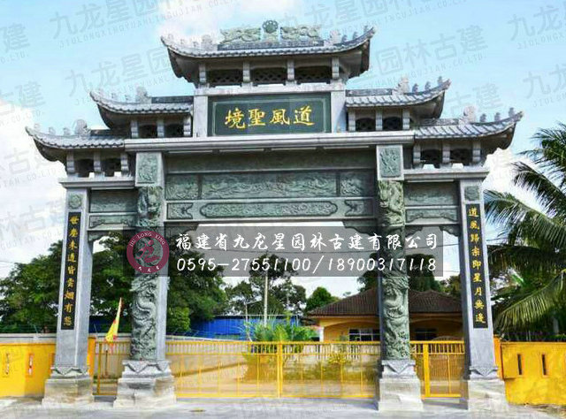 馬來西亞青石雕刻三門四柱石牌坊效果圖