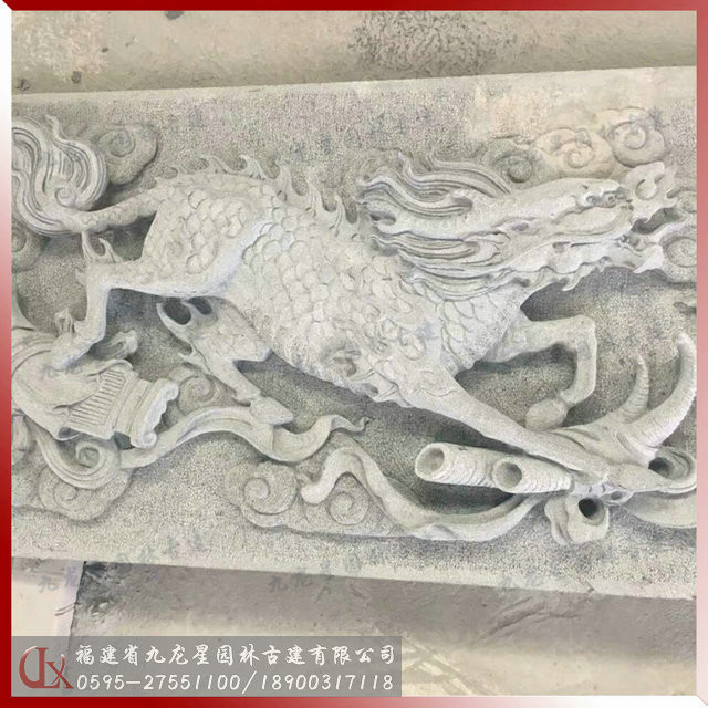 經過漫長的歷史時期石雕麒麟造型從形式到內容也在不斷發生著變化。石雕麒麟雕刻應用廣泛,活躍在民間,特別是其表現形式不僅平面的,立體的,還有舞麒麟那樣活態的展現,色彩裝飾感極強,體現了深厚的民族文化積淀,也證明了人們賦予它對生活的美好期盼的獨特審美意趣。常見的麒麟雕刻圖案有“麒麟獻瑞” “麒麟送子”。