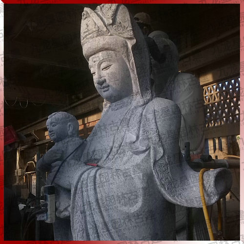 大型石雕送子觀音雕像生產加工中