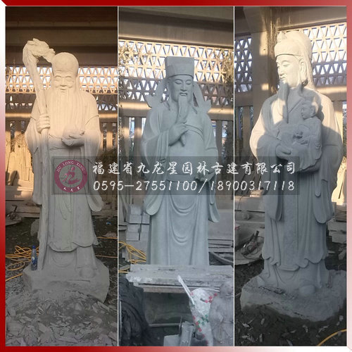 福祿壽三星是中國民間信仰的三位神仙,象征幸福、吉利、長壽,在道教流傳為天上三位吉神。福,頭戴官帽手持玉如意或手捧小孩為天官一品大帝,天官賜福由此而來;祿,手捧如意寓意高官厚祿(因被中國民間扭曲影像,所以現在的祿神都變成捧小孩的);壽,白色的胡髭,手持龍頭杖手捧壽桃意為長命百歲。