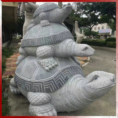 風水化煞方面,一般人多數用威風凜凜的獅子來鎮宅治邪,但有時也會因為環境不同,而用龜來化煞的。龜是屬于吉祥四靈「龍、鳳、龜、麟」之一,而且又是仁壽的象征,事宜擺在沖角的方向。龜采四海之靈氣,三龜成疊,下有雌雄騰地起,背架金龜觀四方。是祥和、平安的意思。
