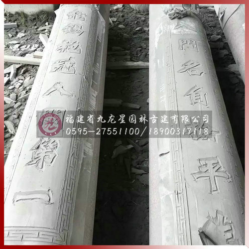 方形圓形石雕對聯柱寺院祠堂古建專用由福建省九龍星園林古建有限公司專業生產加工,我司常年供應傳統手工寺廟雕刻精雕龍鳳柱、石雕龍柱、盤龍柱、華表龍柱、對聯柱、廣場文化柱等各種款式石雕柱子。