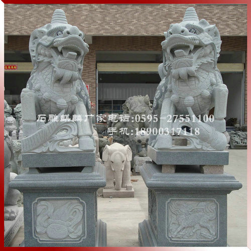 北獅雄壯威武,南獅活潑有趣。還有所謂“三王獅”,那是因為獅子是獸中之王,而獅子所蹲之石刻著鳳凰和牡丹,鳳凰是鳥中之王,牡丹是花中之王,所以有“三王獅”的稱謂。