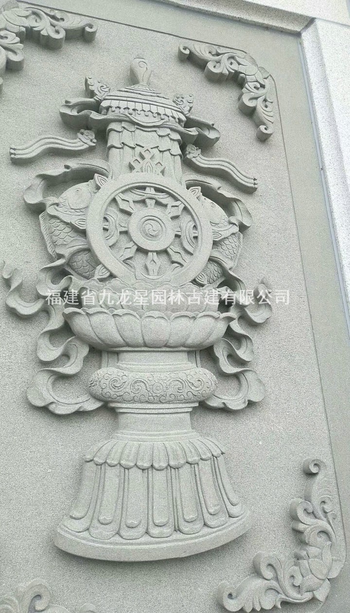 佛教寺院浮雕文化墻所雕刻的內(nèi)容涵蓋了許多方面,有的是寺院的歷史沿革,有的是諸佛菩薩的經(jīng)典典故,有的則是寺院供奉主佛、菩薩的一些人物故事,這些所謂的典故中必然是佛經(jīng)中有明確記載的。這種浮雕文化墻一般會(huì)采用青石或芝麻黑花崗巖石料,因?yàn)檫@些石材的顏色相對(duì)深一些。在雕刻人物形象時(shí),可以清晰地體現(xiàn)出來,包括人物的每一個(gè)動(dòng)作。