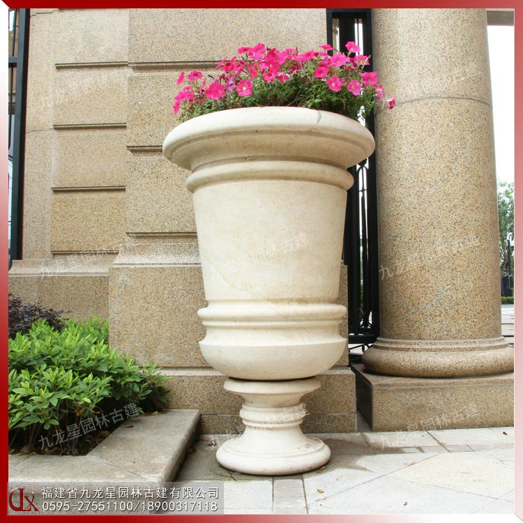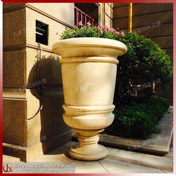 九龍星園林古建打造高顏值埃及米黃石材花缽,現代簡約風格,造型各異,質感柔美,適用于景區、廣場、庭院、房地產景觀裝飾。
