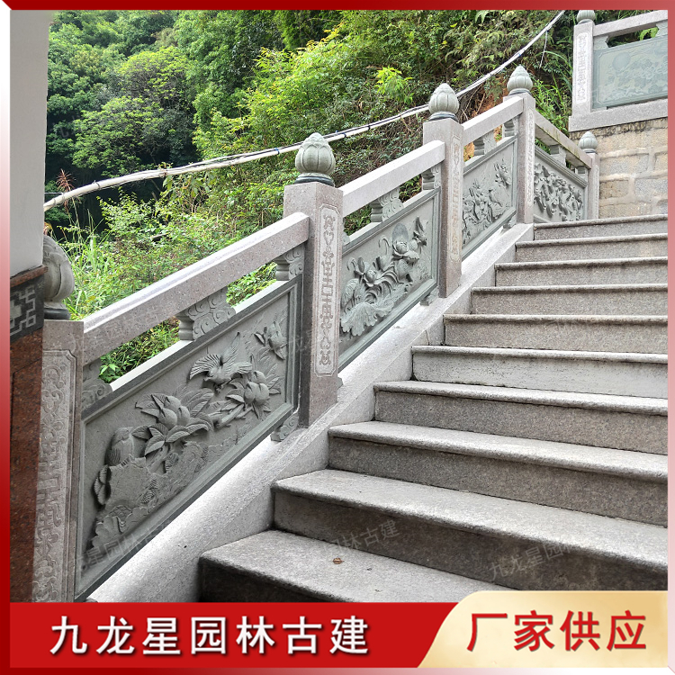 園林古建筑石欄桿具有很好的裝飾作用。石雕欄桿欄板上精美的浮雕圖案讓石欄桿更加的生動,更有觀賞價值。這些豐富多樣的石雕欄桿為園林古建筑的裝飾增強了濃厚的文化氣息。
