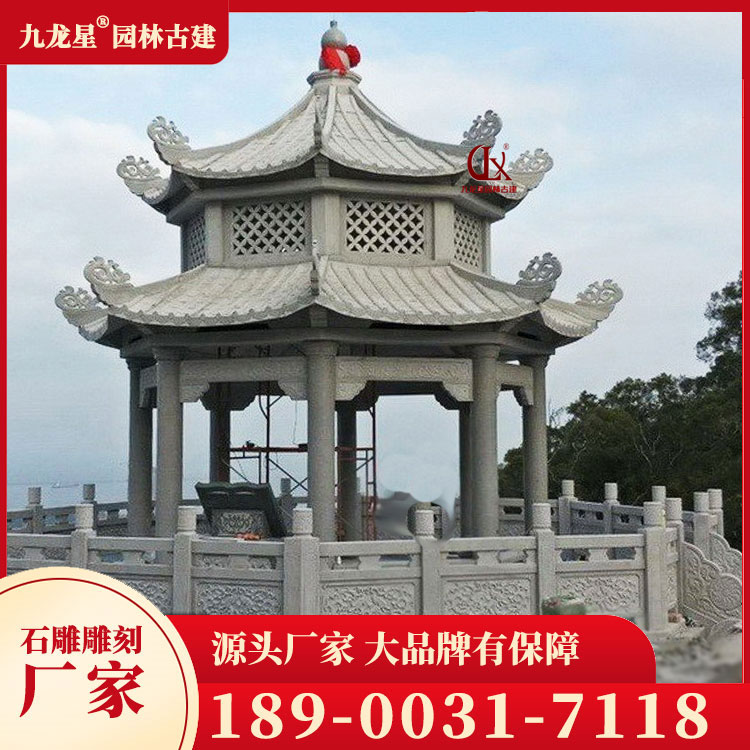 村莊入口石材涼亭 仿古石雕涼亭圖片 樣式可定制 九龍星