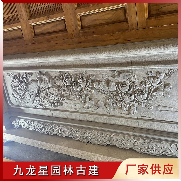 花開富貴牡丹浮雕石雕壁畫 寺院墻面浮雕石雕 手工雕刻